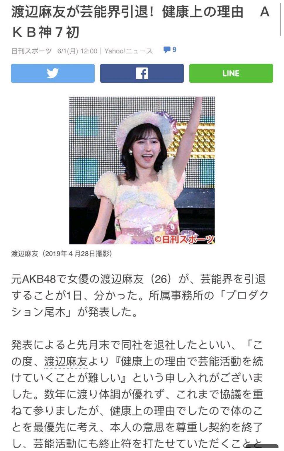26岁渡边麻友清空社交账号 彻底退圈 前akb 神7 成员送祝福 腾讯新闻