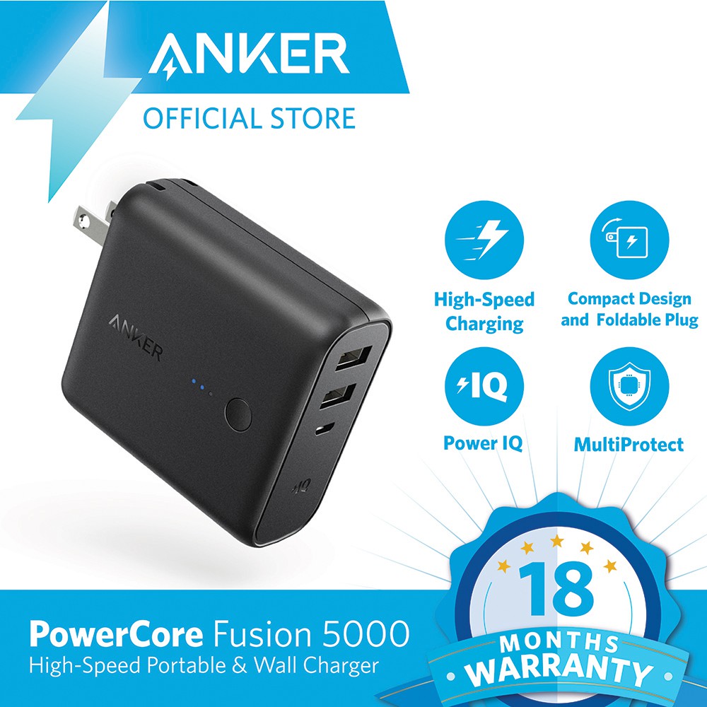 Amazon Com Anker Powercore Fusion 5000 Portable Charger 5000mah 2 In 1 With Dual Usb Wall Charger Foldable Ac Plug And Poweriq Battery Pack For Iphone Ipad Android Samsung Galaxy And More Black